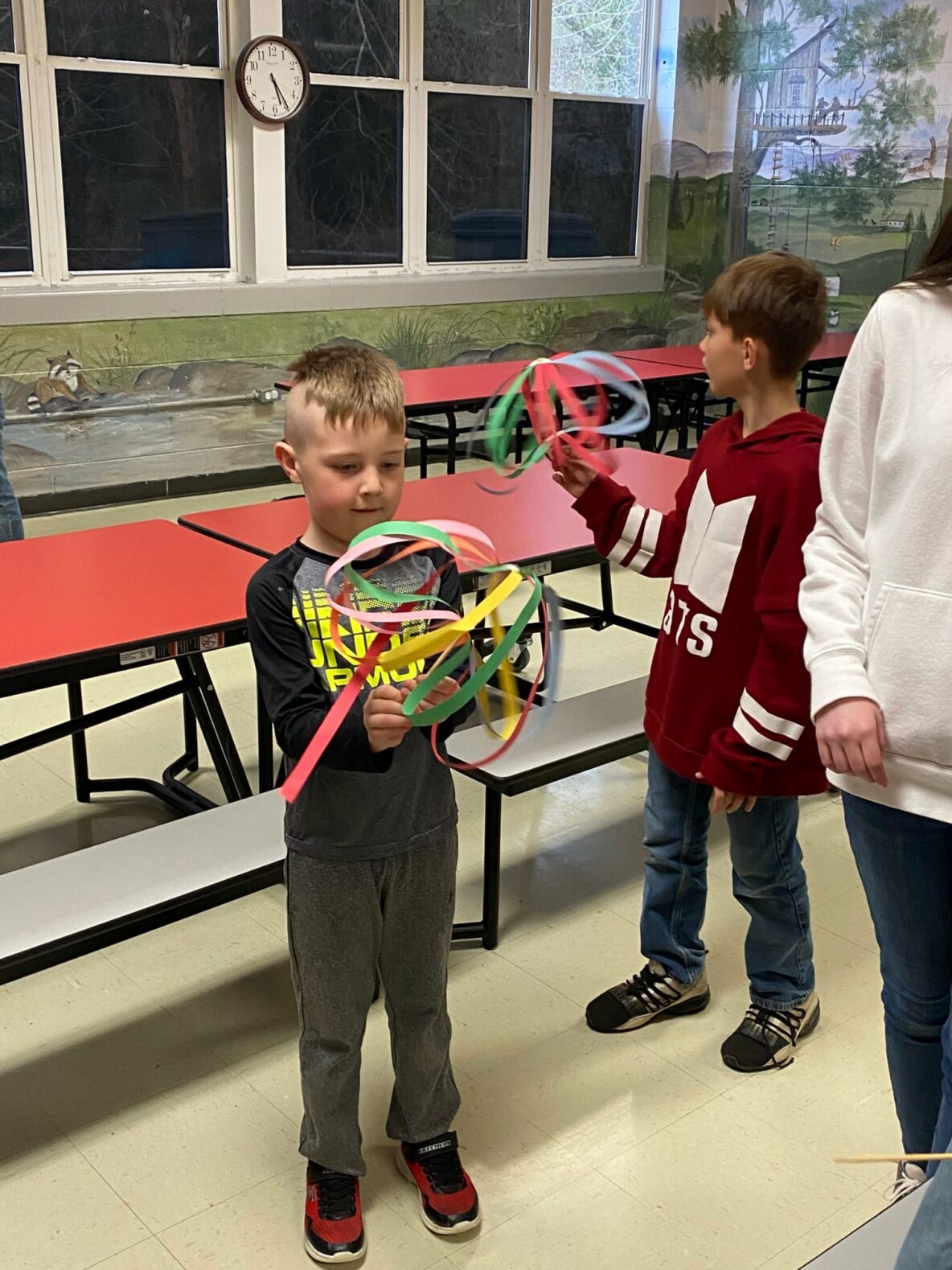Our Tuesday craft. The coolness comes from spinning them, but I didn’t get any