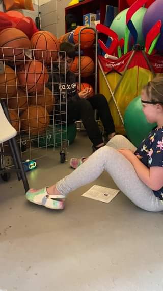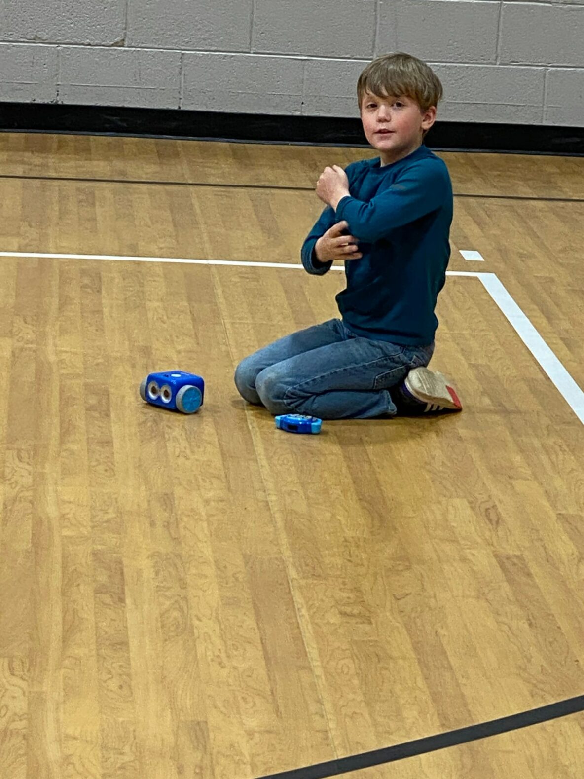 Yesterday was robotics with 3rd and 4th grade. We had some great middle school helpers. Some of the coding needed less light, so we did some in the back room, but eventually we just turned out the lights in the gym. Source