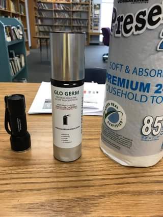 Went over with the students the importance of washing hands. Some students took six times washing their hands for the germ spray not to show up under the black light. I think the lesson took. Source