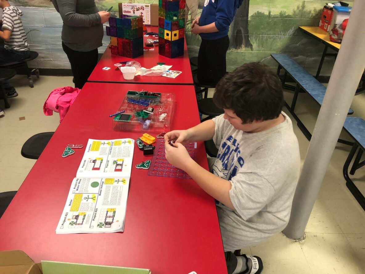 Monday was full of activities. Because of testing and no homework for the older grades, we started out playing with Snap Circuits, Magna-Tiles, cards, and Jenga. Then we jumped into our craft of making flowers that will soon decorate the bulletin board. Lastly, we went outside to the parking lot and played 4-square and did some sidewalk chalk art. Source