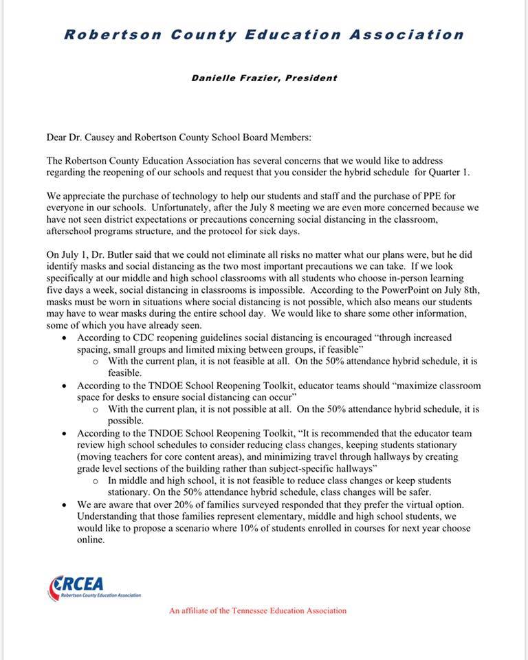 Please support the Robertson County Education Association at the School Board Meeting tonight at 6pm. This letter will be presented to board officials. Please get there early because only 50 people will be allowed in the meeting. Wear a red shirt if you have one. CALL TO ACTION! The School Board is hosting a 3rd work session tomorrow evening (Monday … Read More