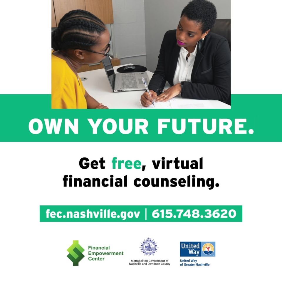 Own your future. Residents throughout Robertson and Cheatham Counties have access to free professional financial counseling. The Financial Empowerment Center team is ready to help you succeed in your financial journey. Virtual and phone sessions are available! Visit fec.nashville.gov or call 615.748.3620 to schedule your appointment. #financialempowerment #financialgoals Source