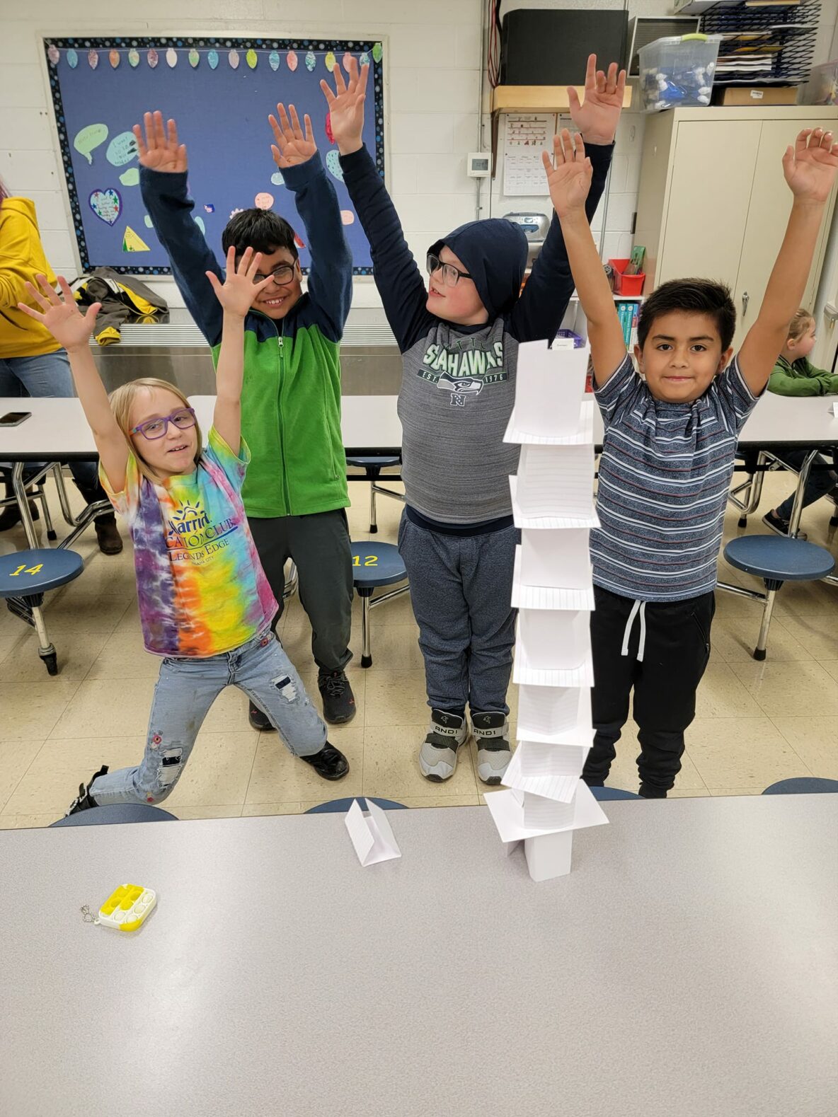 Yesterday we attempted the index card tower challenge! The kiddos worked together and made some awesome and tall towers! Source