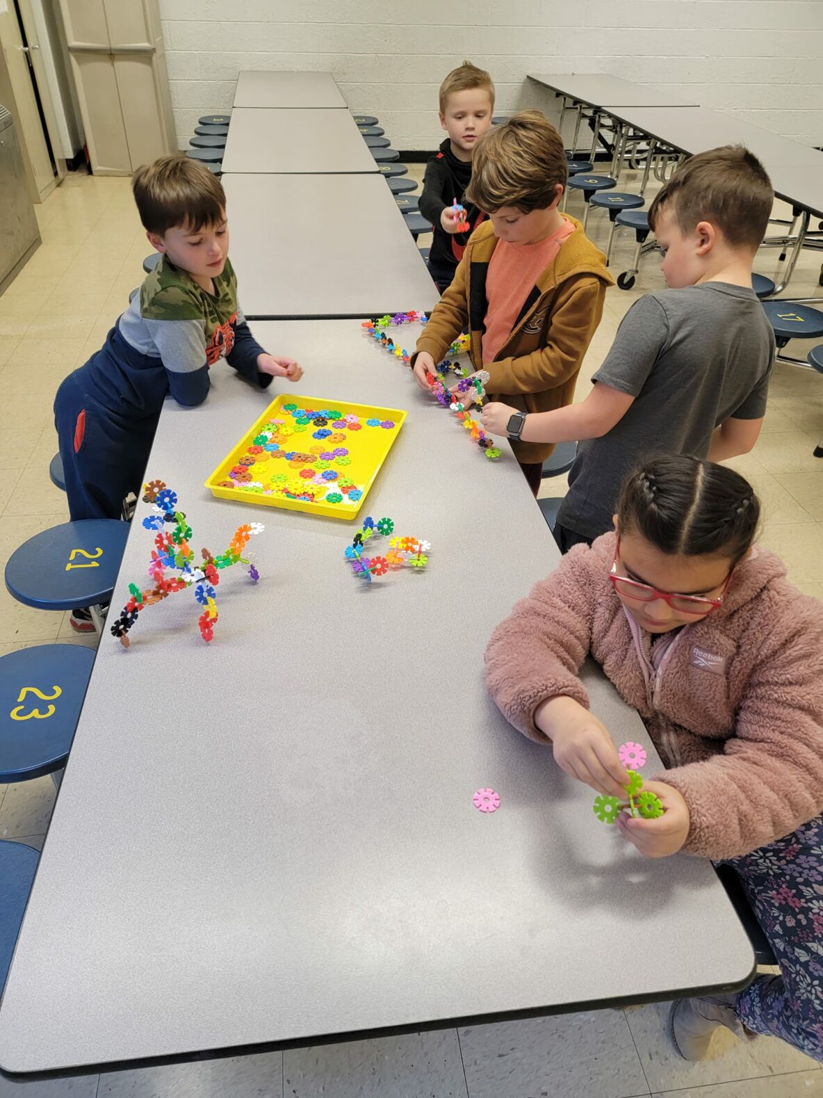 Today the kids got into groups and used BrainFlakes to build whatever their imagination decided. Then we added a twist and they had to work as one big group to put all their creations together. We have HUGE imaginations within our students!! Source