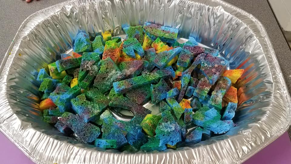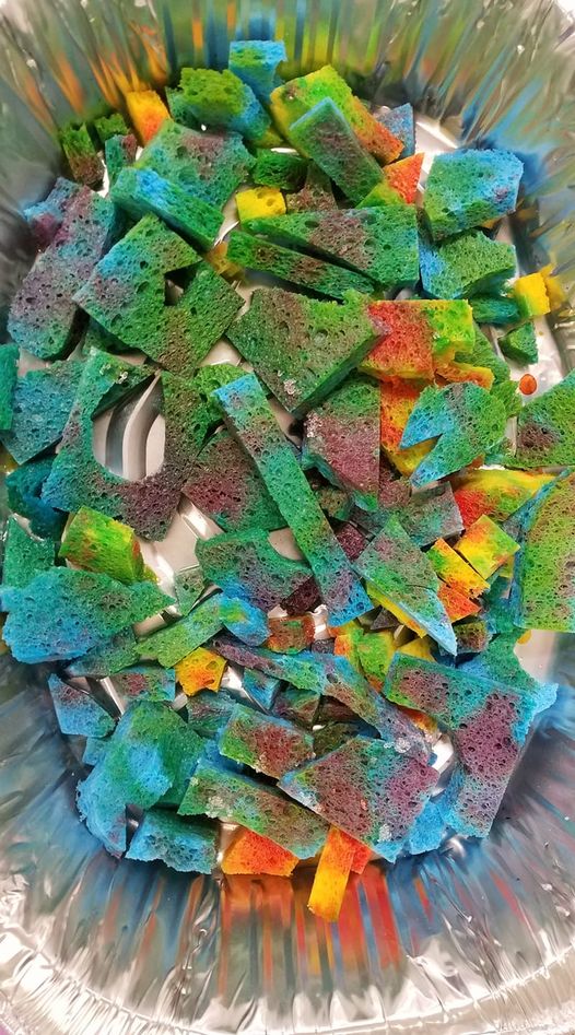 Day 2 of Summer Camp Our Crystal Garden…day 2. Less salt crystals, sponges a